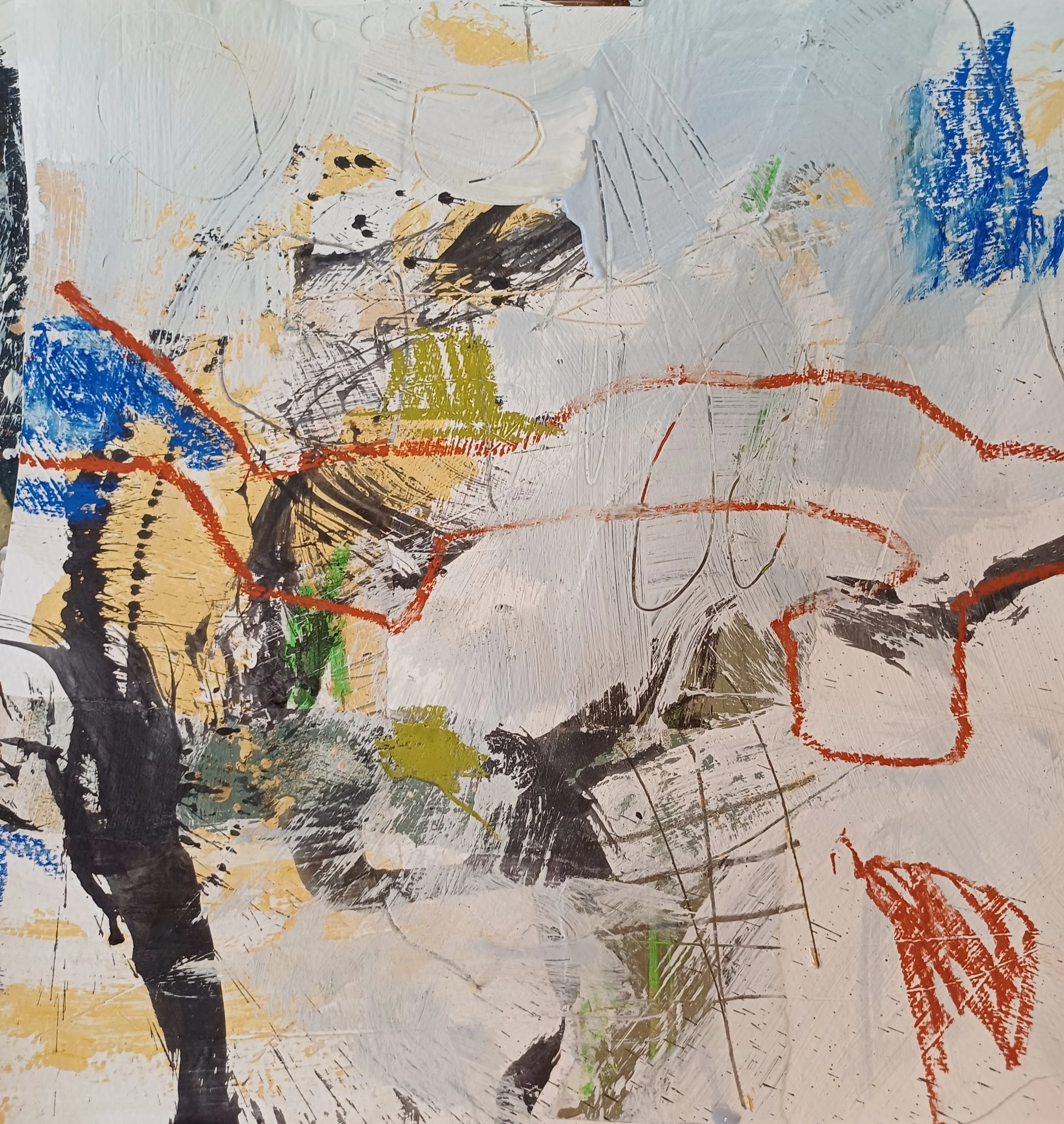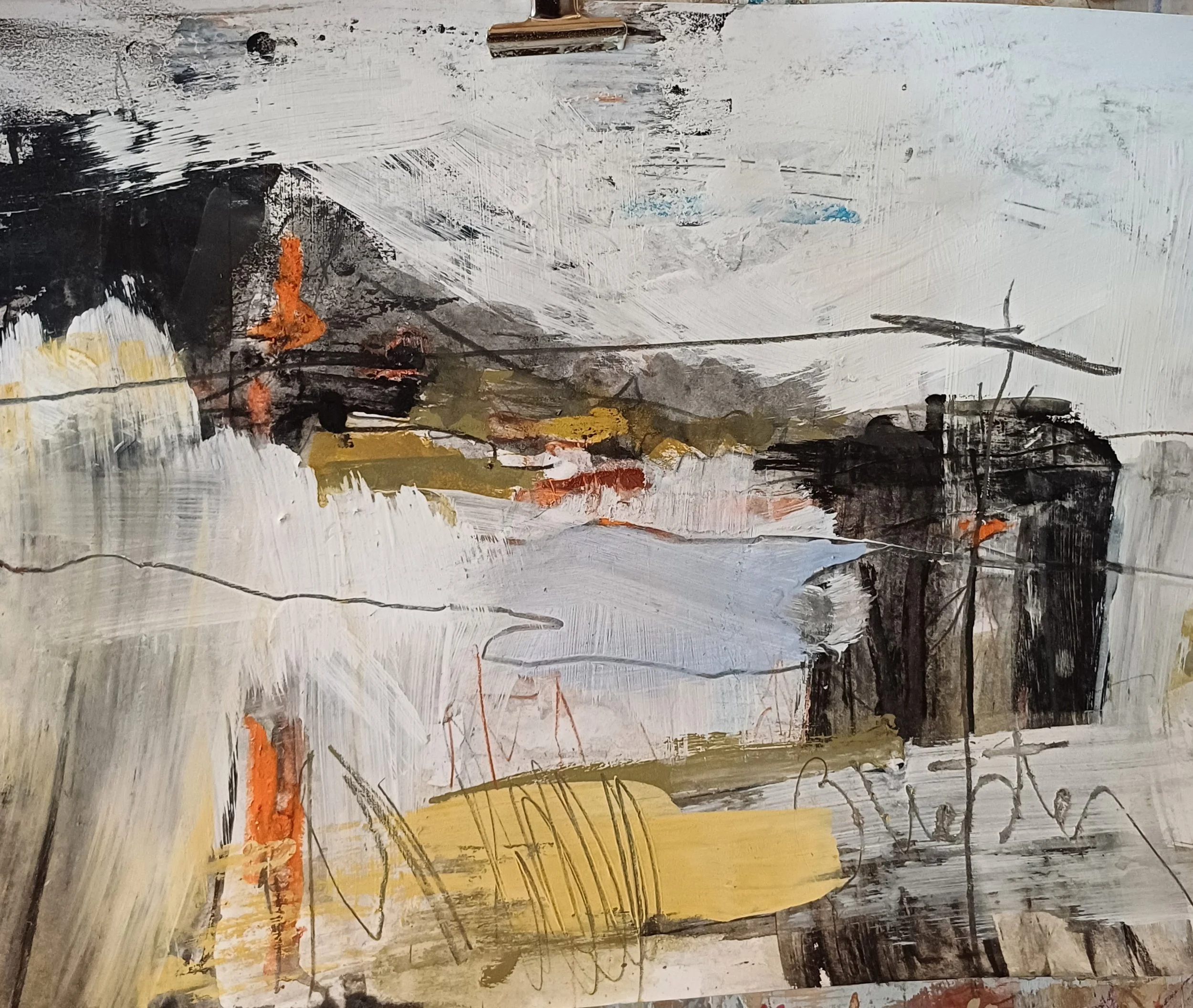 The process of applying the layers-which takes a lot of time as each layer has to dry completely- is quite meditative. Beautiful patterns appear, just hinted at below the surface as glazes of paint, a variety of marks and collage interweave with each other. I like the suggestion of something going on below the surface-just like any landscape has a geology, a history of human interventions and an abundance of life that goes on, sometimes apparent, sometimes hidden-I think it appeals to my curiosity.