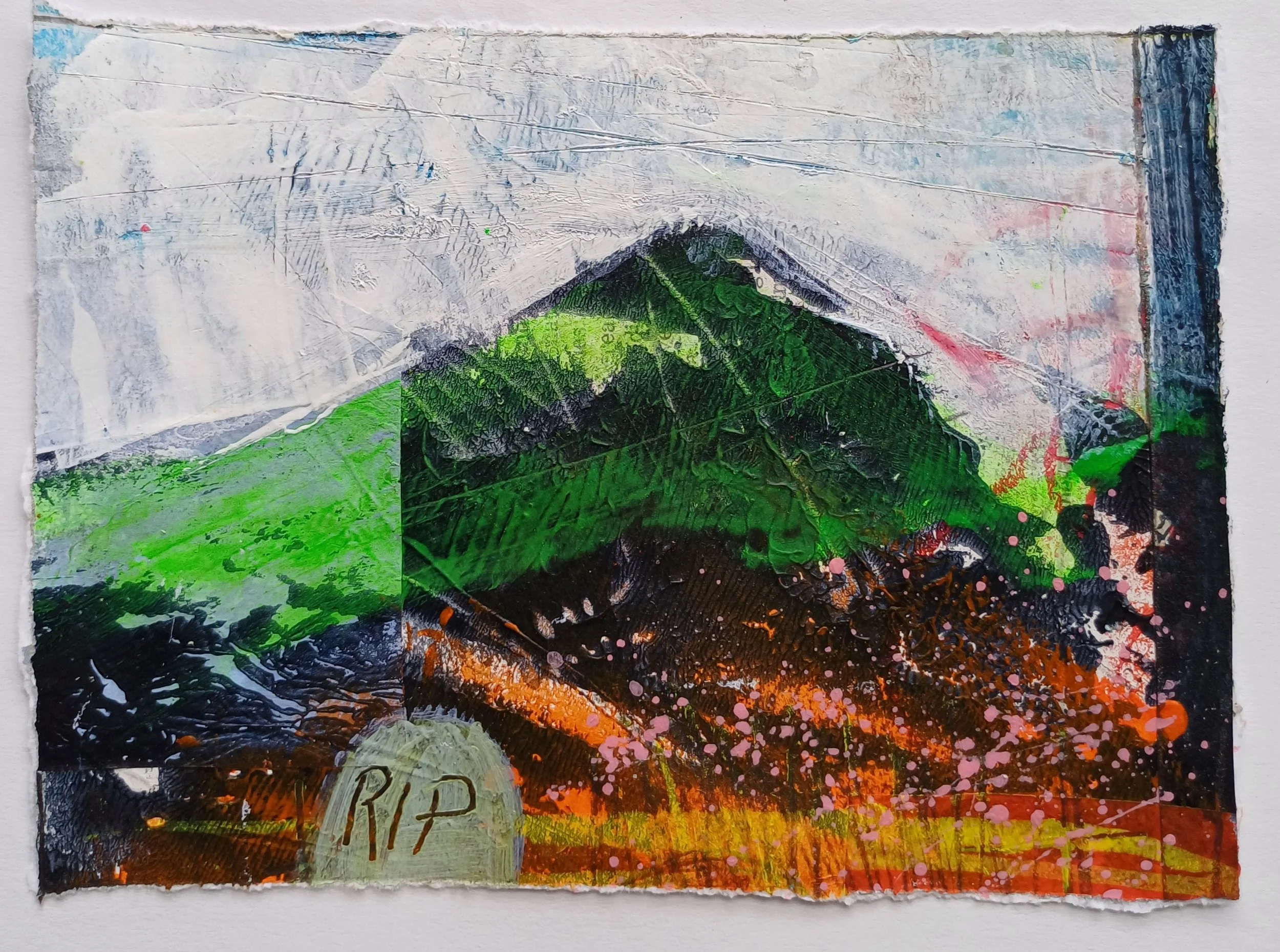I want to talk about the Afterwards series - 50 small A6 paintings, in portrait format because they are portraits of feelings, portraits of the landscape that I am inhabiting without my husband Chris- both metaphorically and literally. Our favourite thing was walking in wild places: along the coast, the moors, 3 Caminos in Spain and Portugal and the lake district. And it is in Helvellyn in the lakes where he now rests, a place where Chris and I walked together for the first time in the 1980’s.